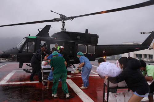 At another hospital, an army helicopter evacuated a critically ill elderly woman, who was surrounded by medical staff on the aircraft then wheeled away from the rooftop helipad of another facility, according to a handout video.