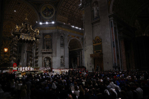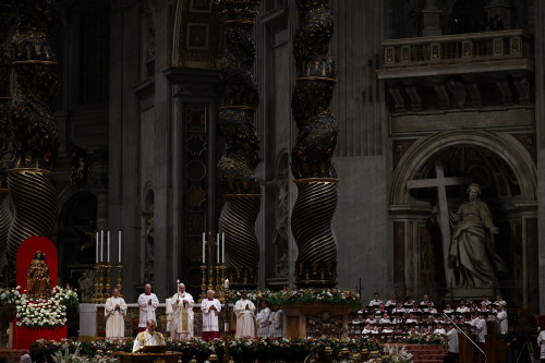 In his homily to thousands in Christendom’s largest church, the pope urged Catholics to follow the example of saints who he said struggled for justice so that “Easter gifts of harmony and peace may grow and flourish everywhere.”